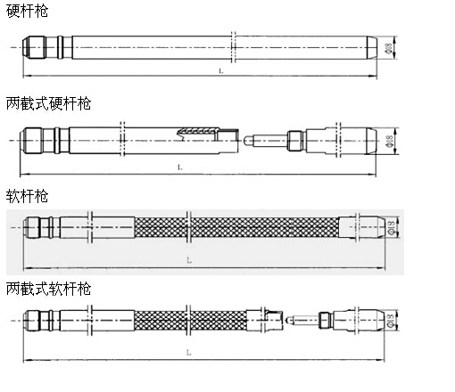2.根據槍桿的結構特點分為:可擺動槍桿,剛性直桿。