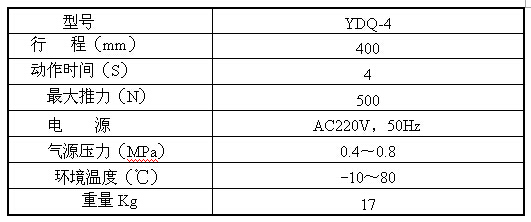 【氣動(dòng)推進(jìn)器產(chǎn)品主要參數(shù)】