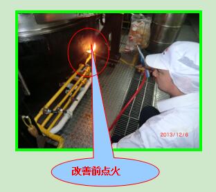 目前直火鍋爐點火使用點火槍,沒有安裝自動控制高能點火器,當點火槍伸進爐膛時,燃氣閥門開啟過遲火焰易熄滅,燃氣閥門開啟過早火焰會出現轟燃,火苗從點火孔冒出燒傷操作員臉部,存在安全隱患。